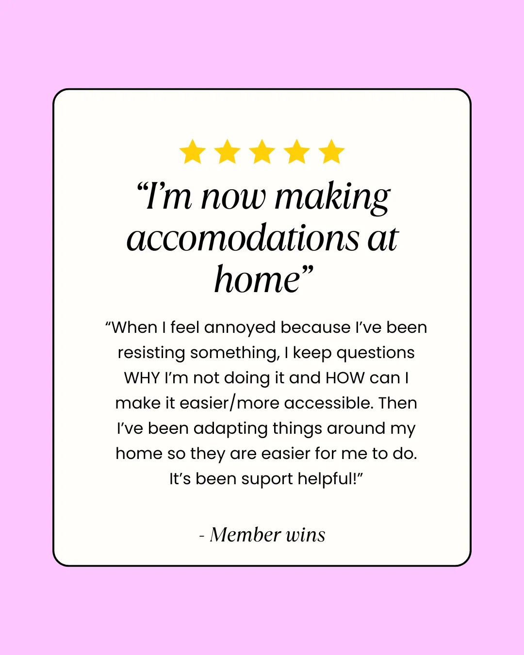 This community is all about accountability and actually implementing new ADHD friendly habits and strategies. There’s no such thing as falling off the wagon here.